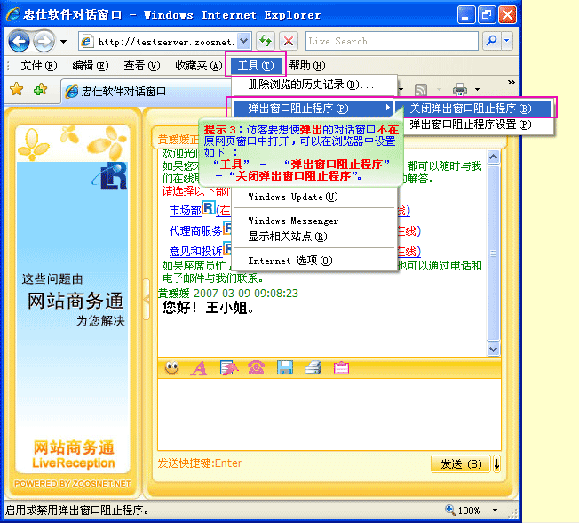 设置后,再有客服人员对您进行直接邀请,对话窗口就会在新窗口弹出,如(图3);