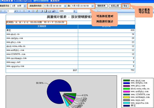 通过友情链接报表统计可以看到您在别的网站上做别的广告的有效点击率是多少,是你衡量广告效果的一个参考方式。