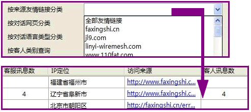 1.在某一个时间段内 ,可以详细的看到来自某一链接的广告点击次数及对话质量。